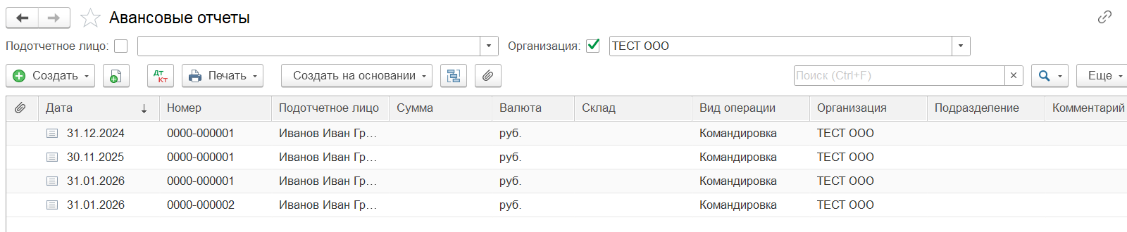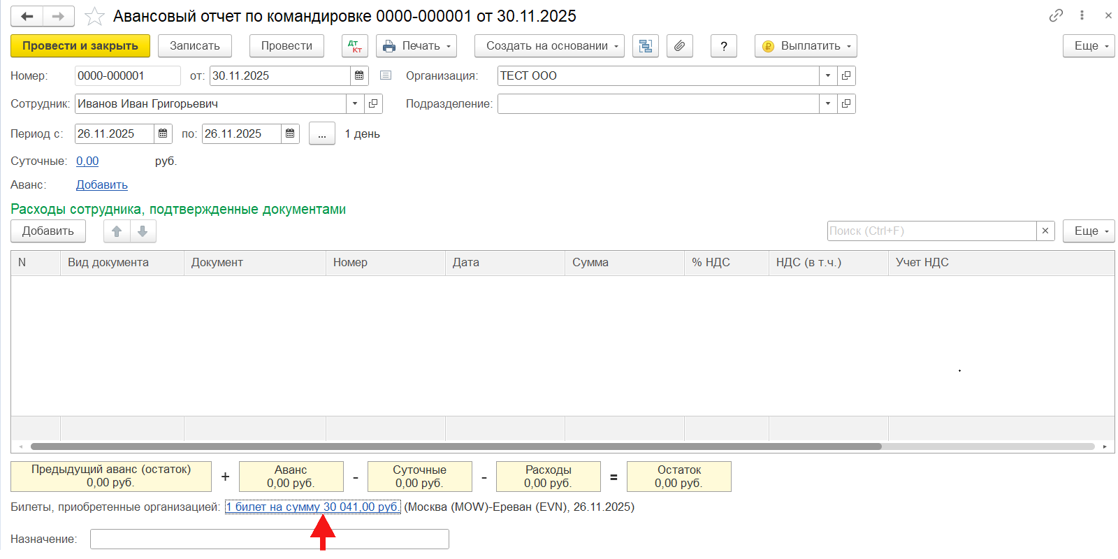 Документ «Авансовый отчет»