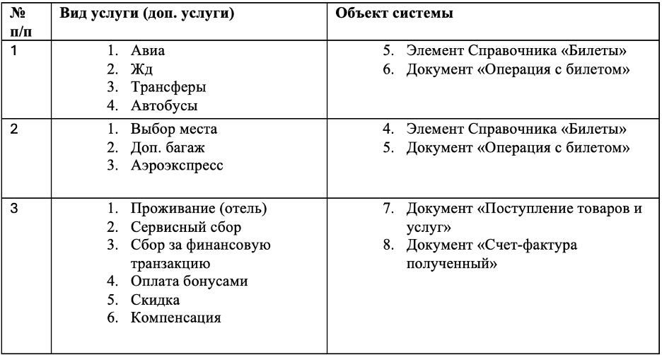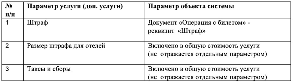 Входящие в состав услуги параметры и их отражение в формируемых модулем «Загрузка документов от Вайт Тревел» объектах системы описаны в таблице ниже.