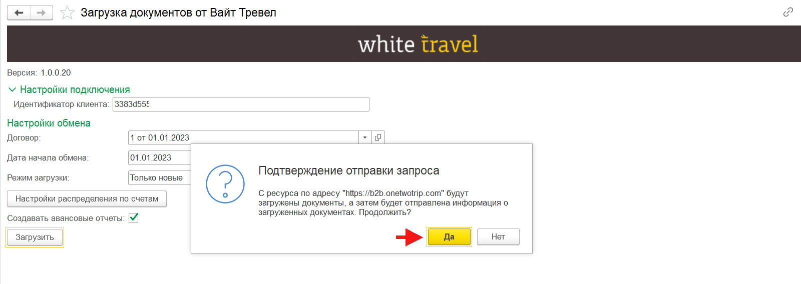 В открывшейся форме необходимо подтвердить отправку запроса на сервер и последующую загрузку документов с помощью команды «Да».