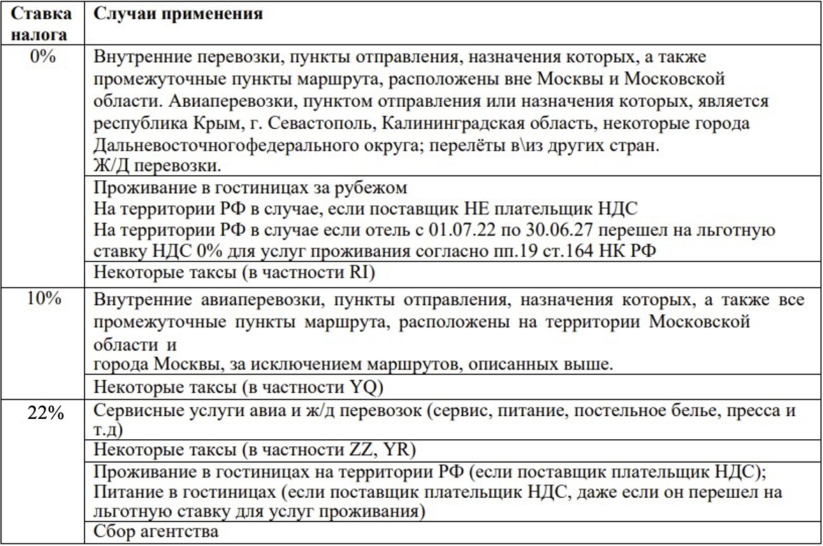 Какие ставки НДС применяются к услугам перевозки и проживания?